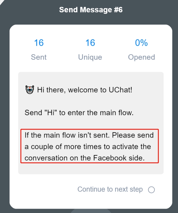 Our UChat support bot is suffering from the issue as well. This is what I put as the first message on my chatbot: